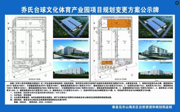 乔氏台球文化体育产业园项目规划变更方案公示牌