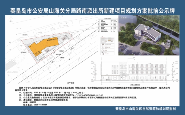 秦皇岛市公安局山海关分局路南派出所新建项目规划方案批前公示牌